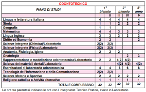 Oltre alle materie comuni a tutti gli indirizzi studierai chimica, fisica, anatomia, fisiologia e igiene, disegno e modellazione odontotecnica, esercitazione pratica di laboratorio odontotecnico.